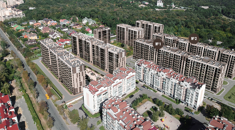 Квартальна забудова в ЖК «Кришталеві джерела» надає унікальну можливість мати свій власний життєвий простір, забезпечує підвищений комфорт і безпеку проживання. В Європі, саме клубна середньоповерхова забудова вже давно визнана «золотим стандартом» житла. Крім того, прямо біля будинків розташований прекрасний внутрішній сквер з фонтанчиком та зонами відпочинку, неподалік джерела цілющої питної води і алеї, що ведуть до каскадів озер парку «Феофанія».