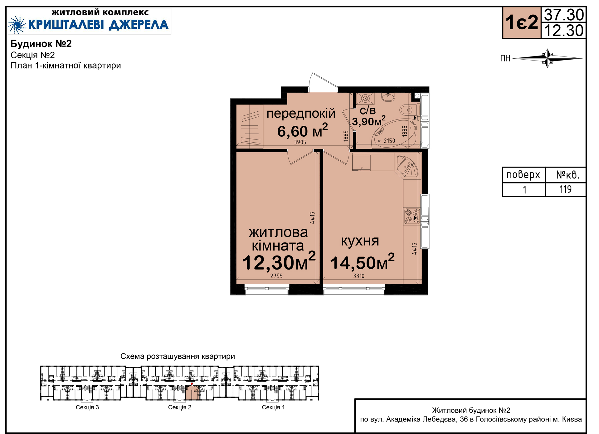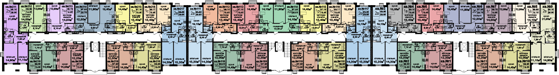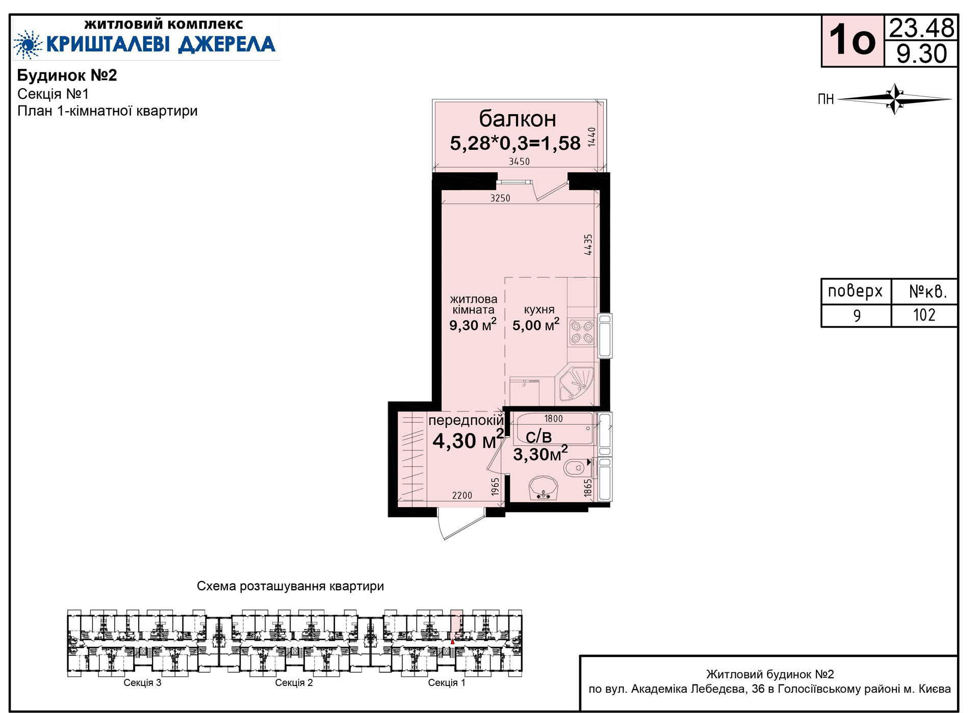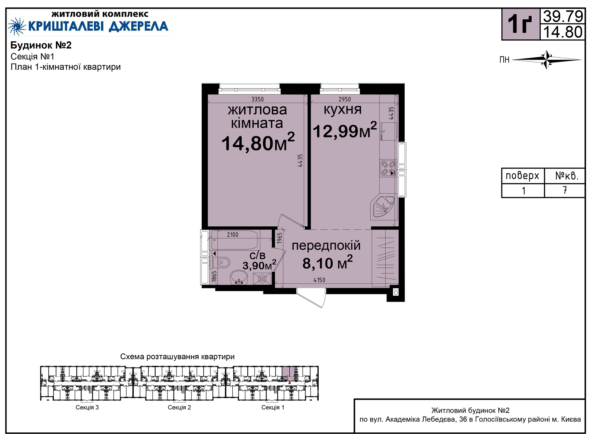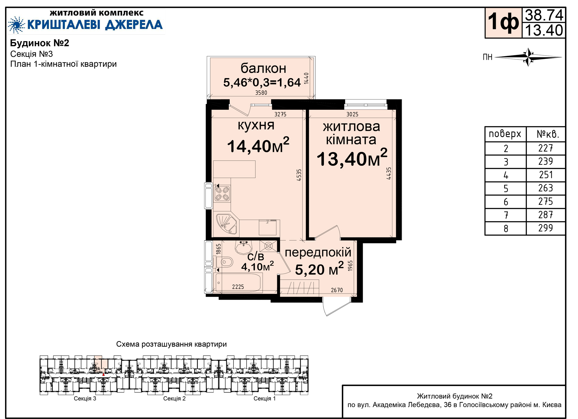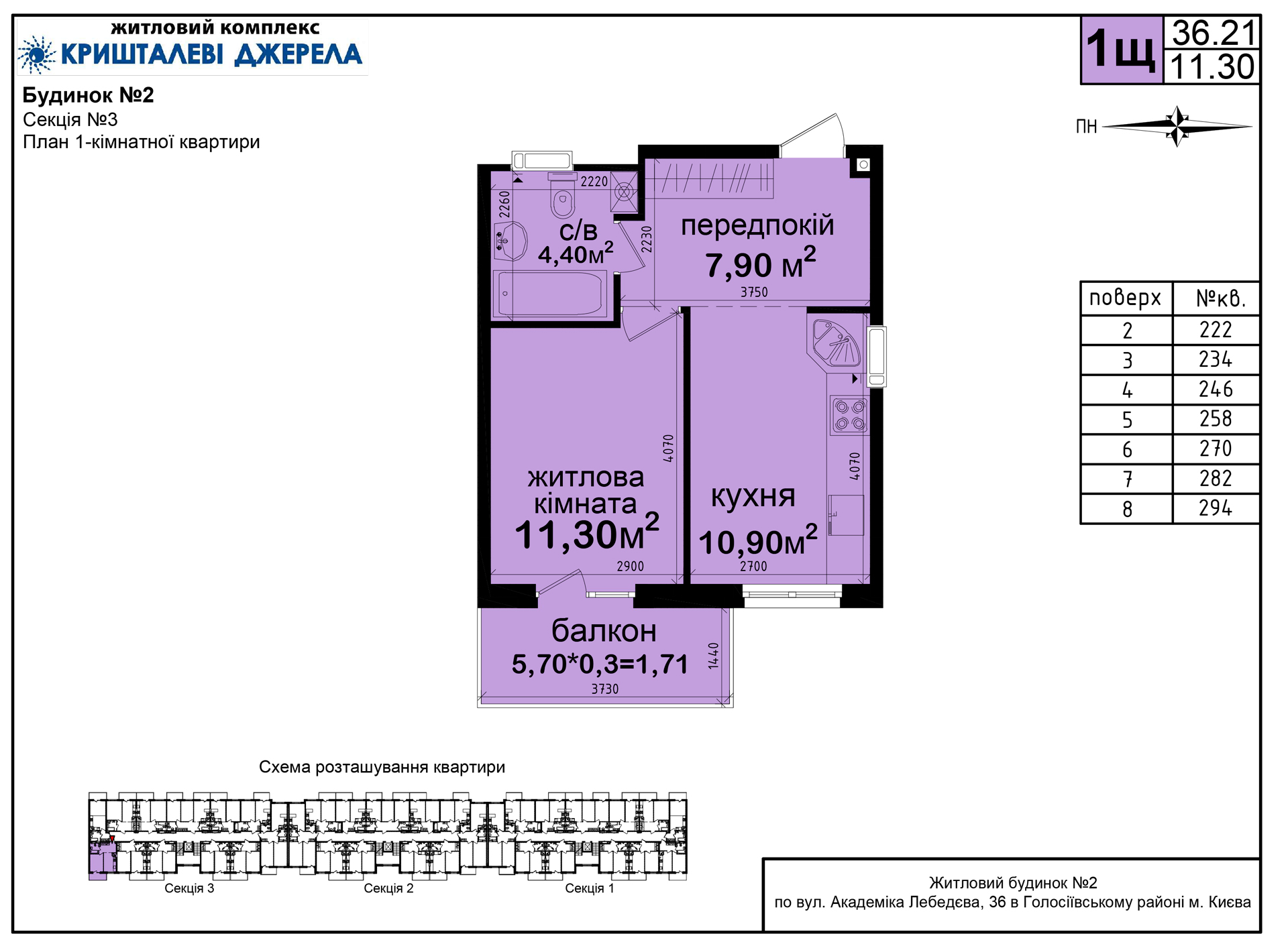 | № | Секція | Поверх | Кімнат | Площа, м2 | Ціна, грн/м2 | Ціна, грн | Статус |