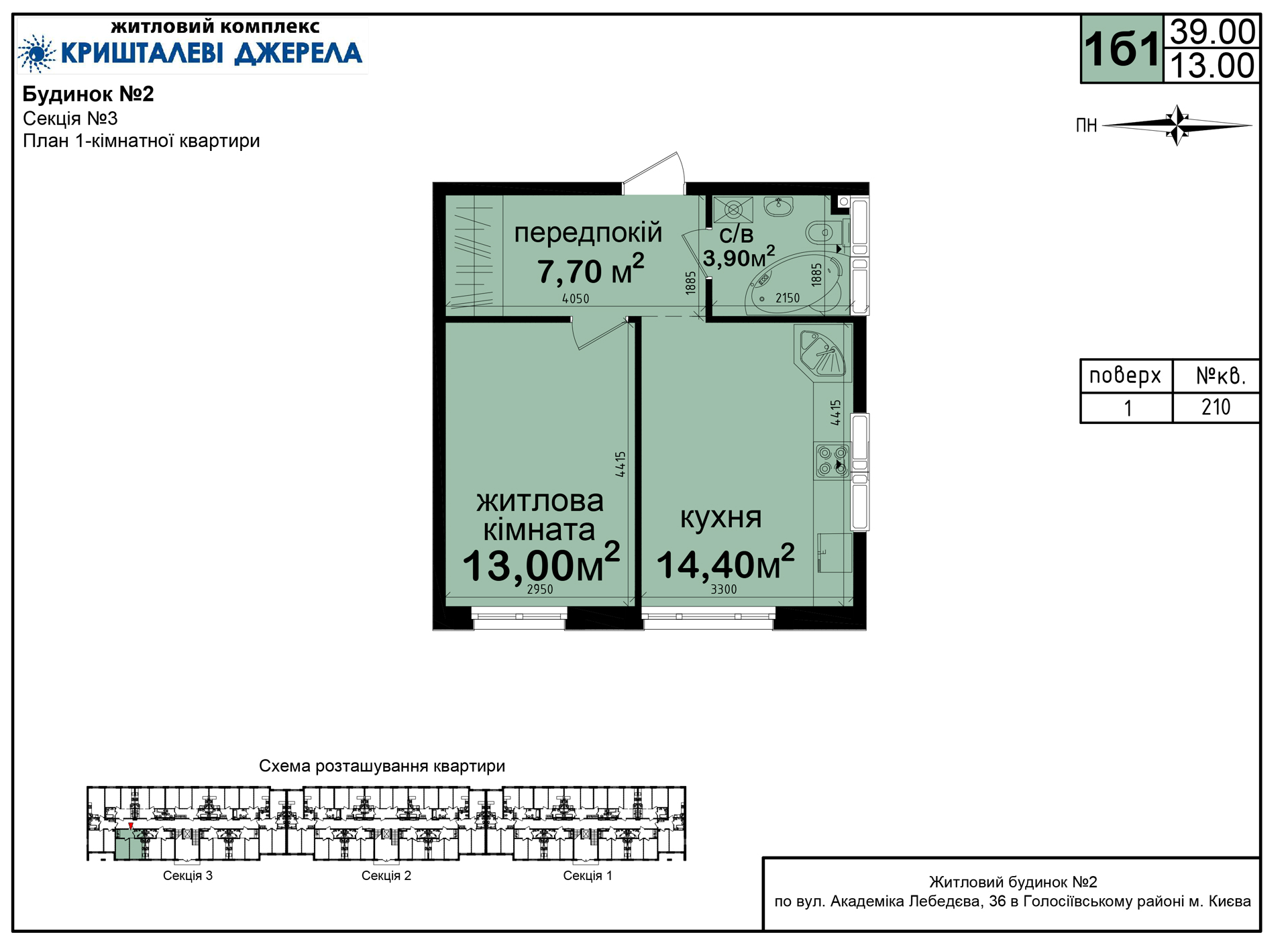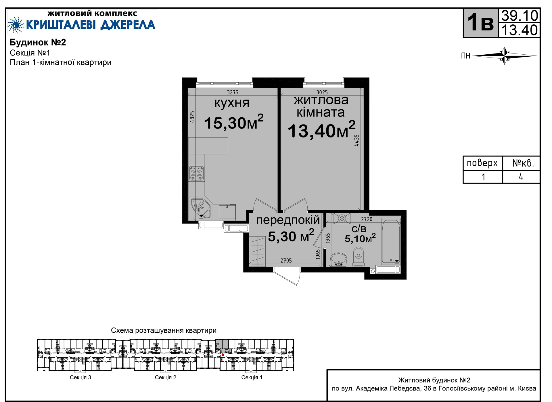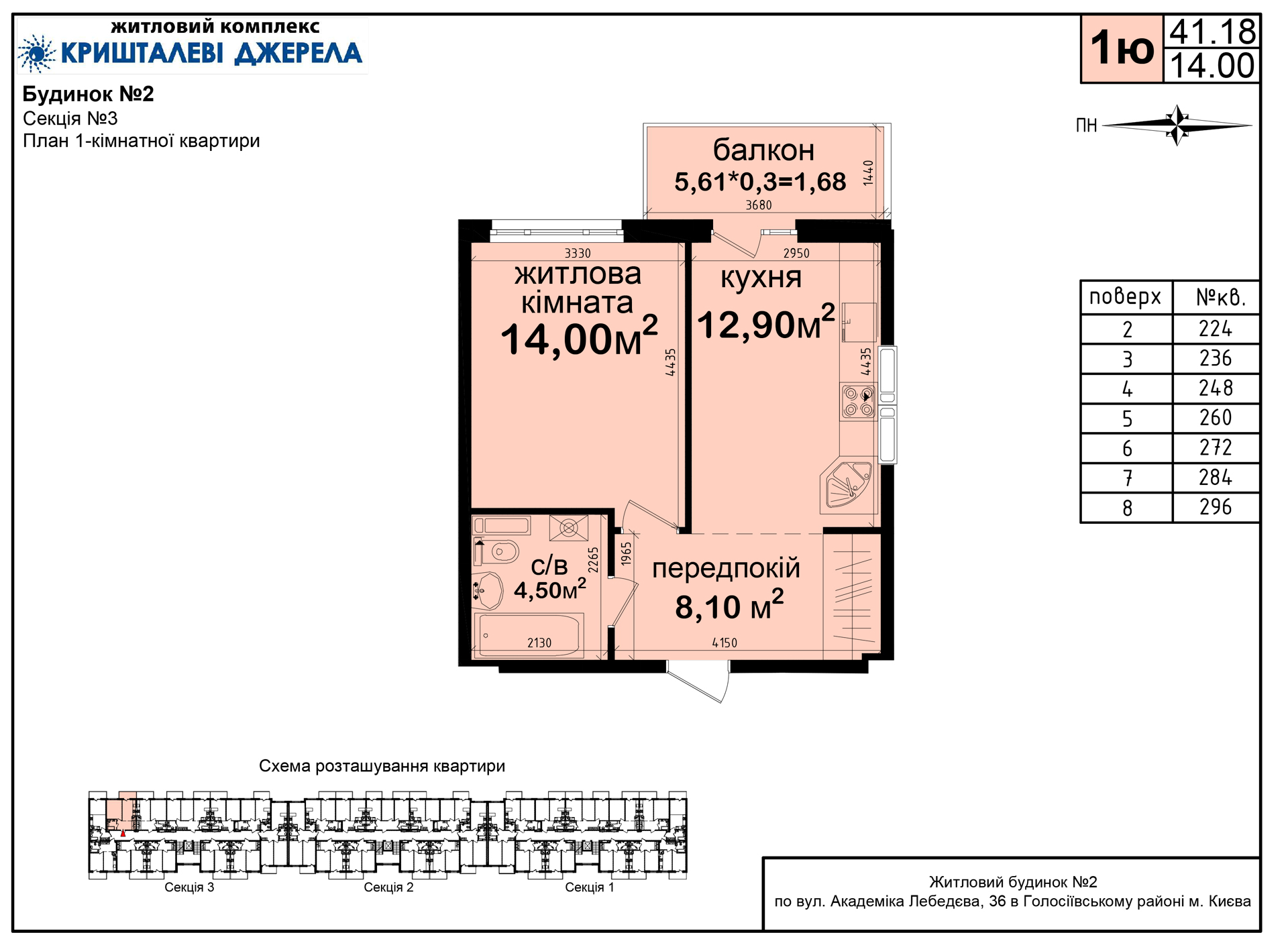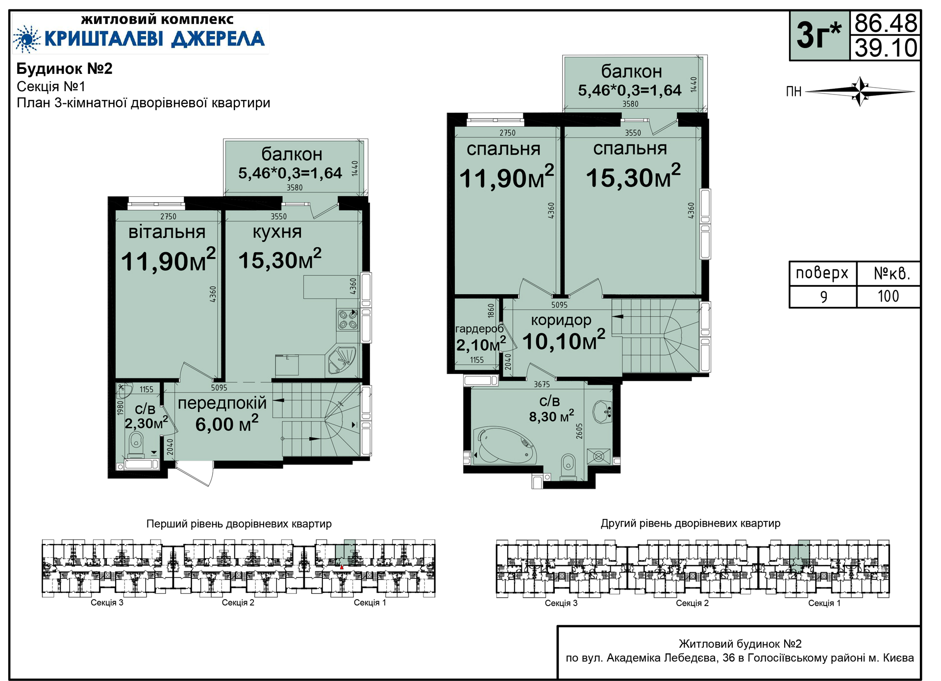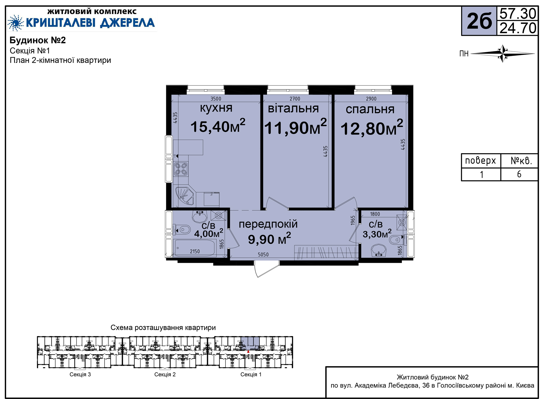 | № | Секція | Поверх | Кімнат | Площа, м2 | Ціна, грн/м2 | Ціна, грн | Статус |