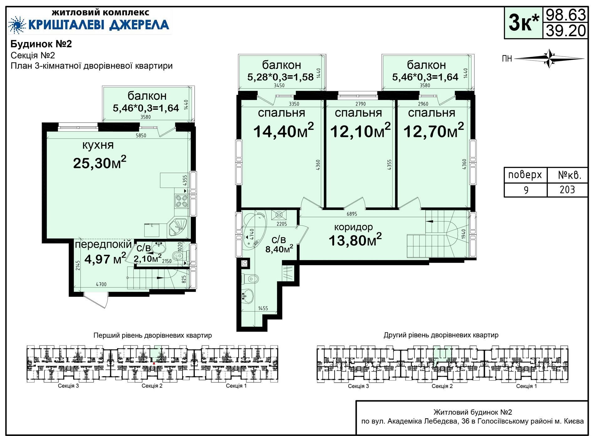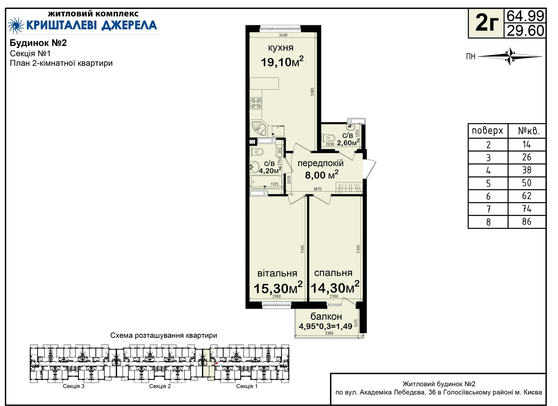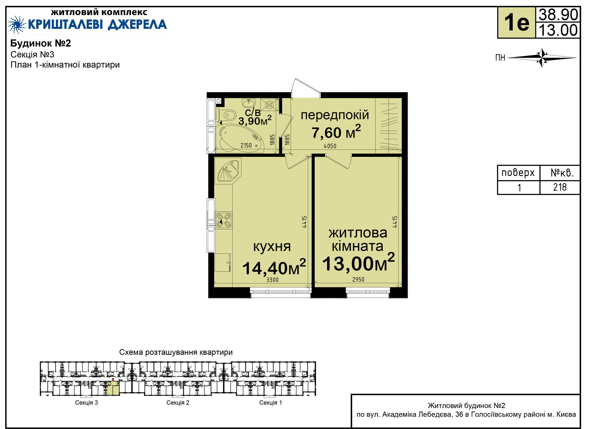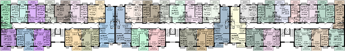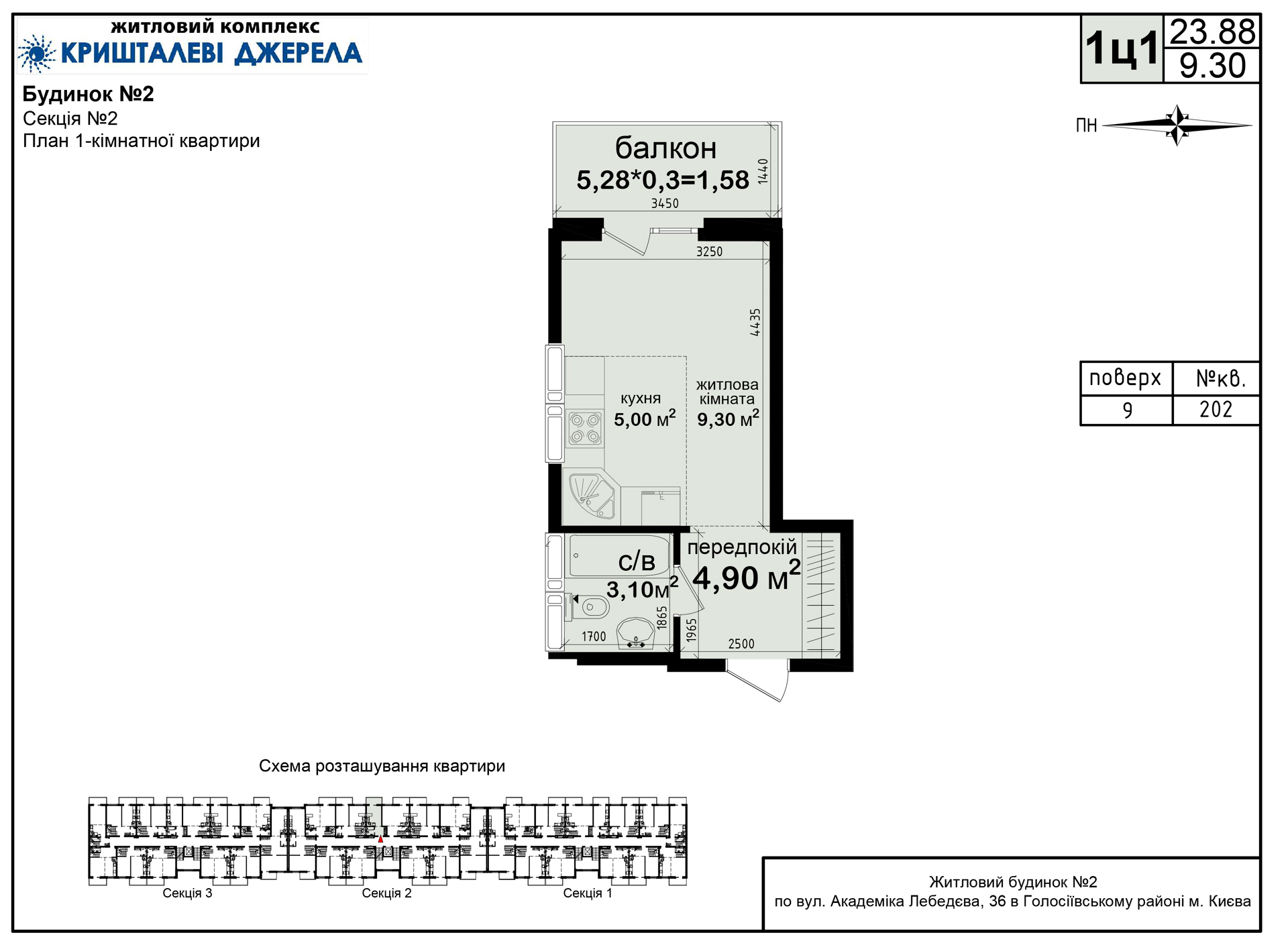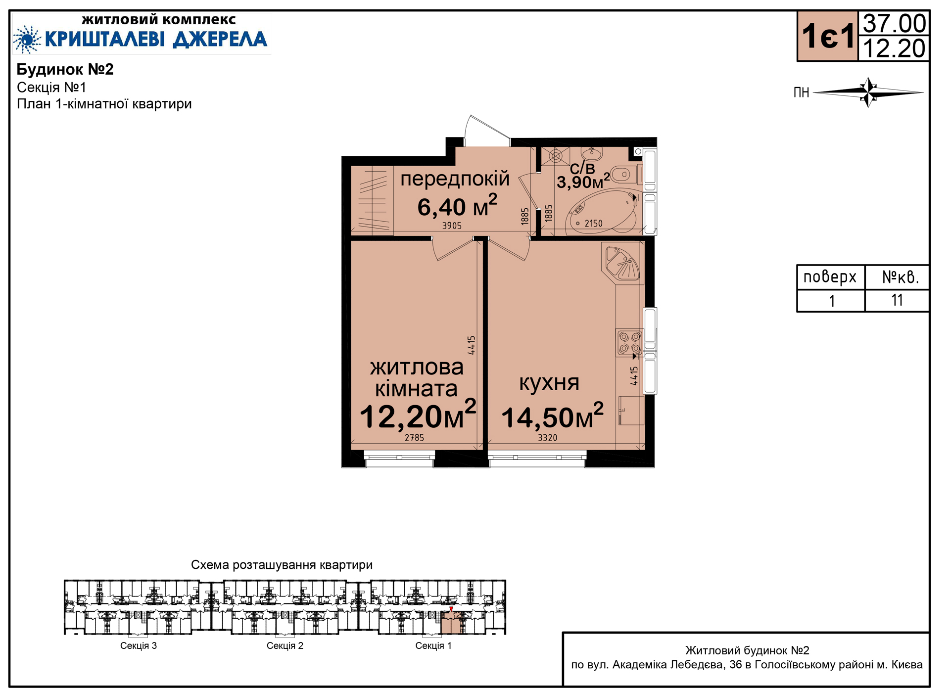 | № | Секція | Поверх | Кімнат | Площа, м2 | Ціна, грн/м2 | Ціна, грн | Статус |