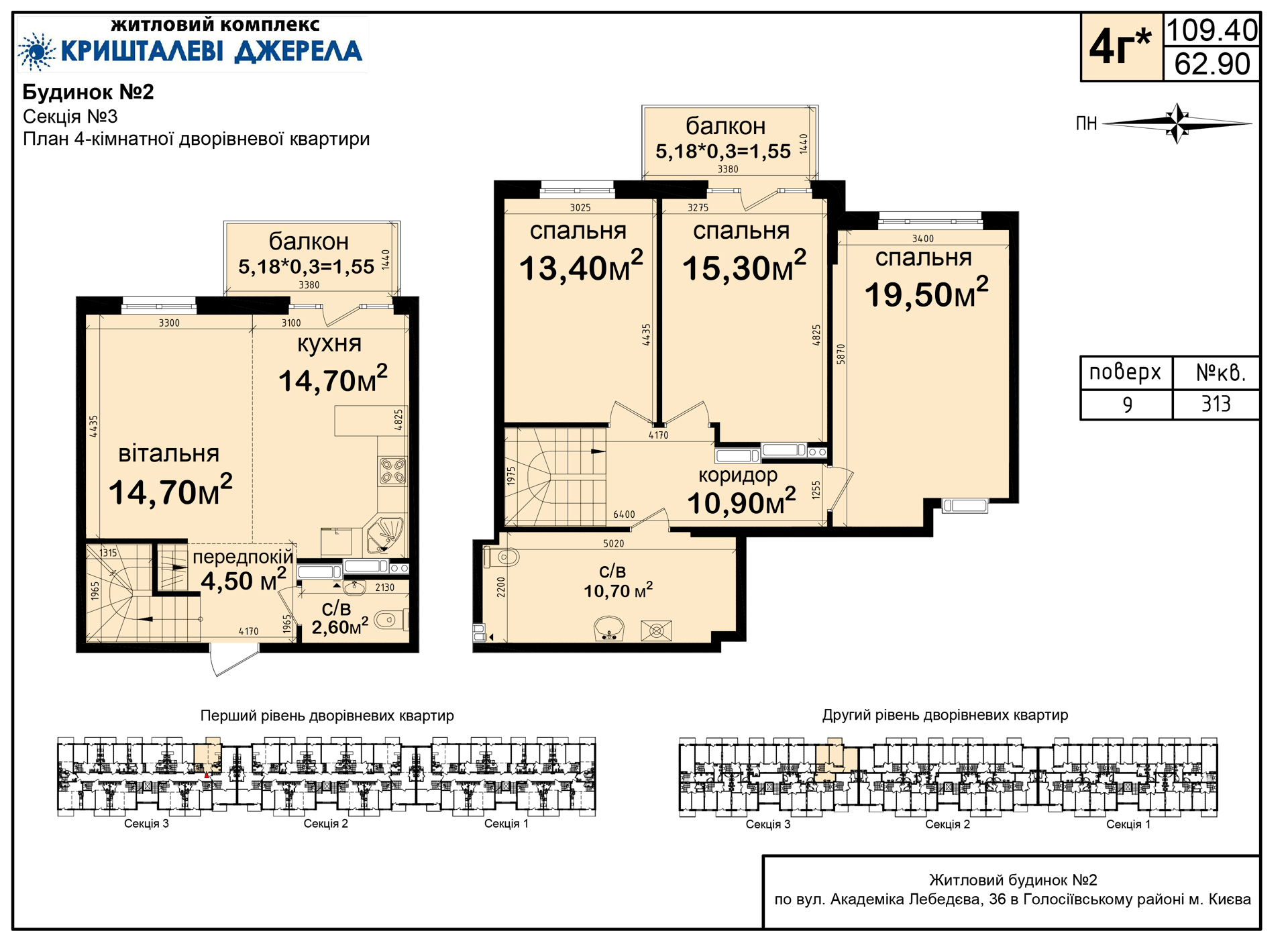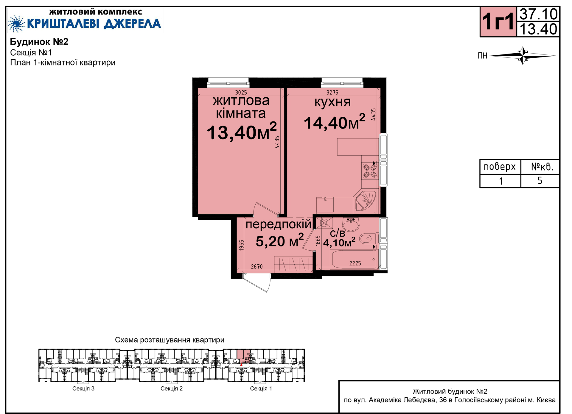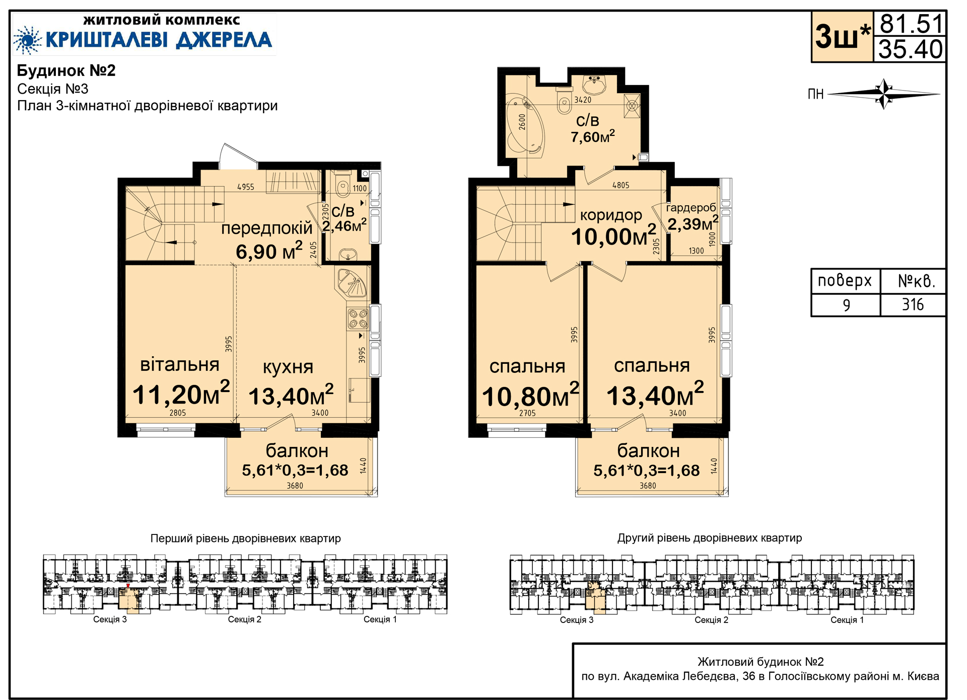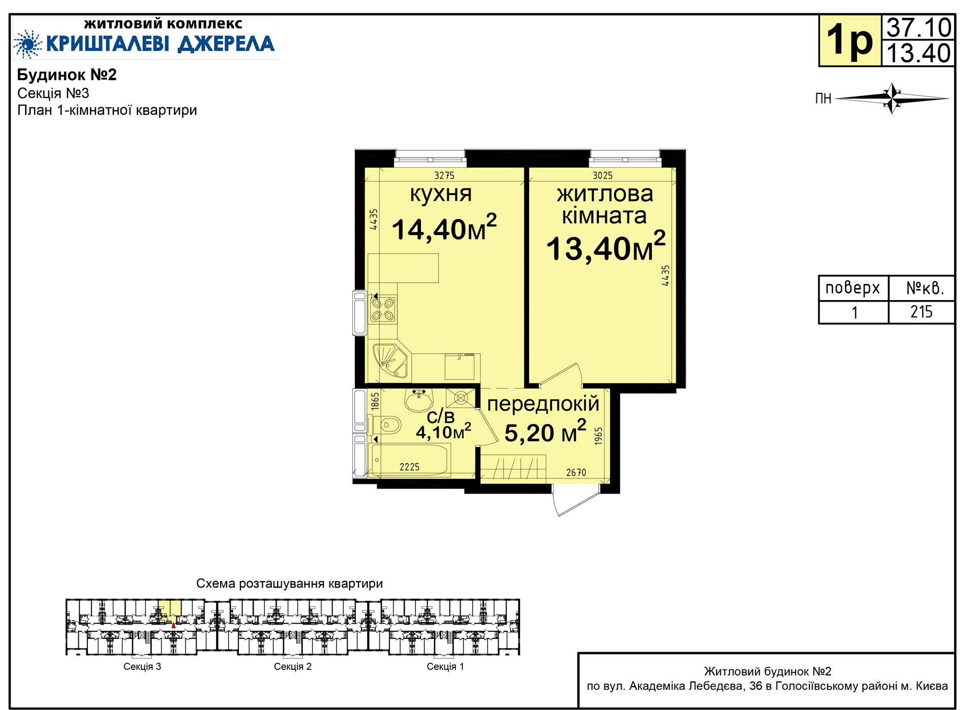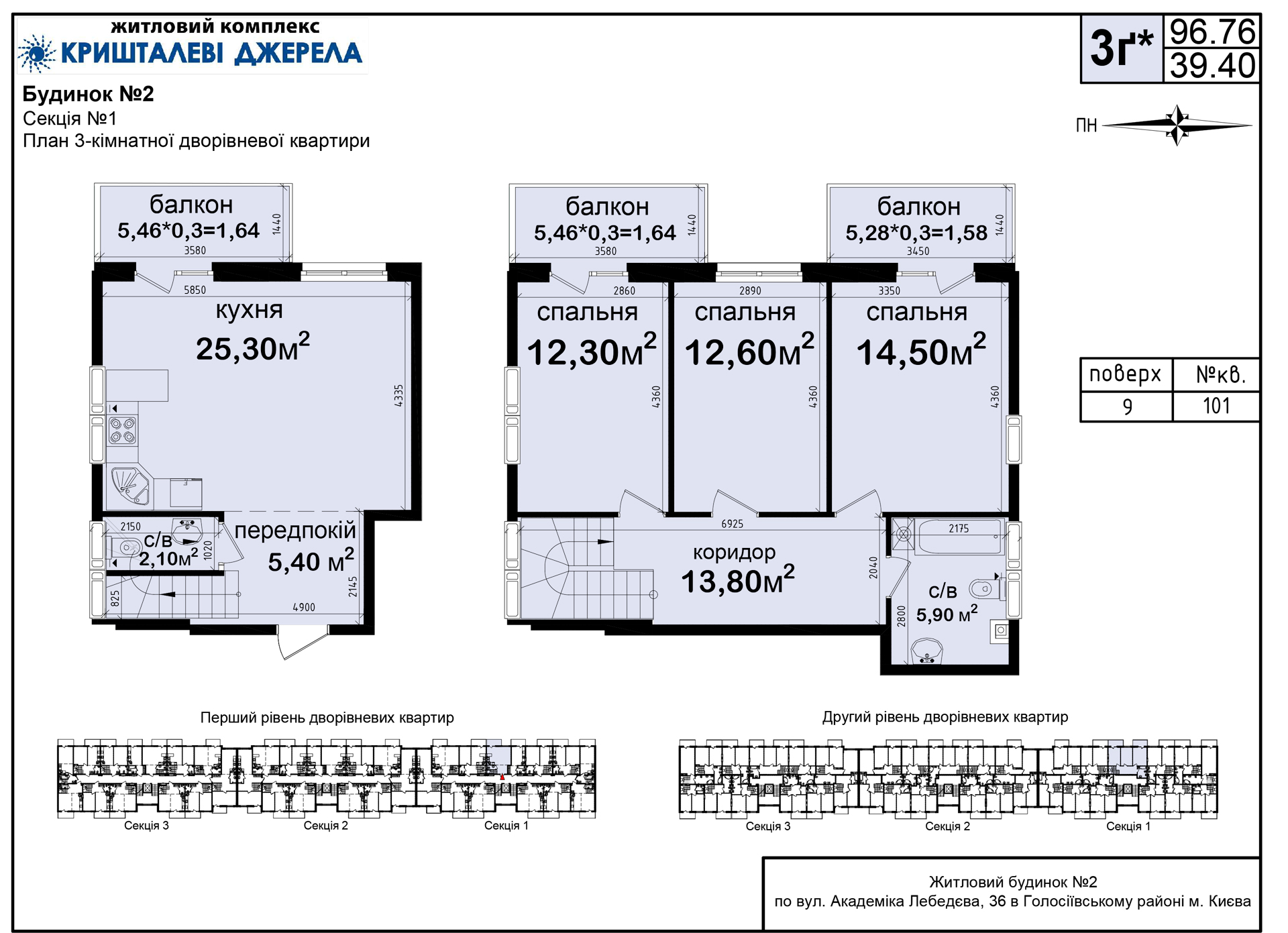 | № | Секція | Поверх | Кімнат | Площа, м2 | Ціна, грн/м2 | Ціна, грн | Статус |