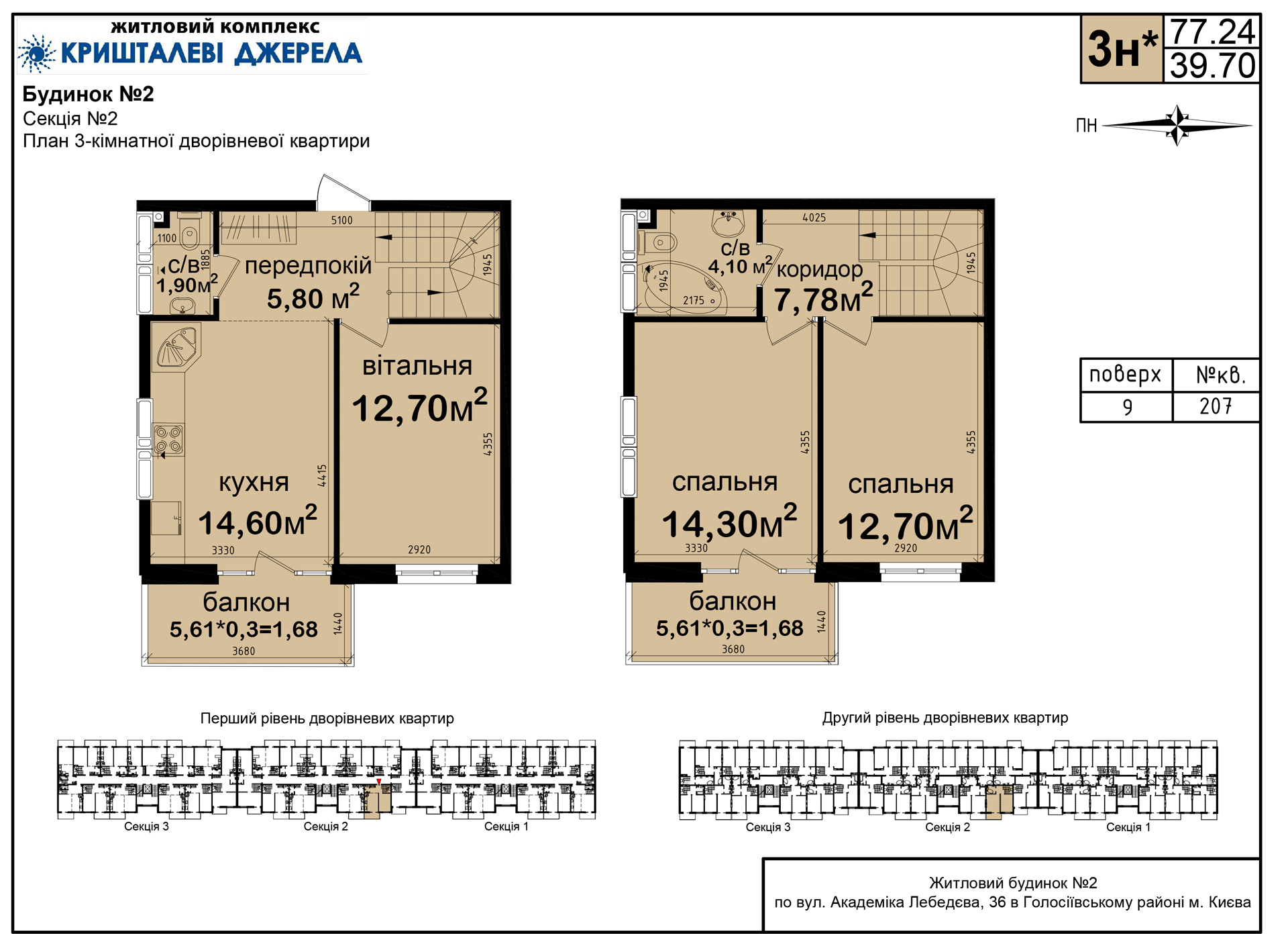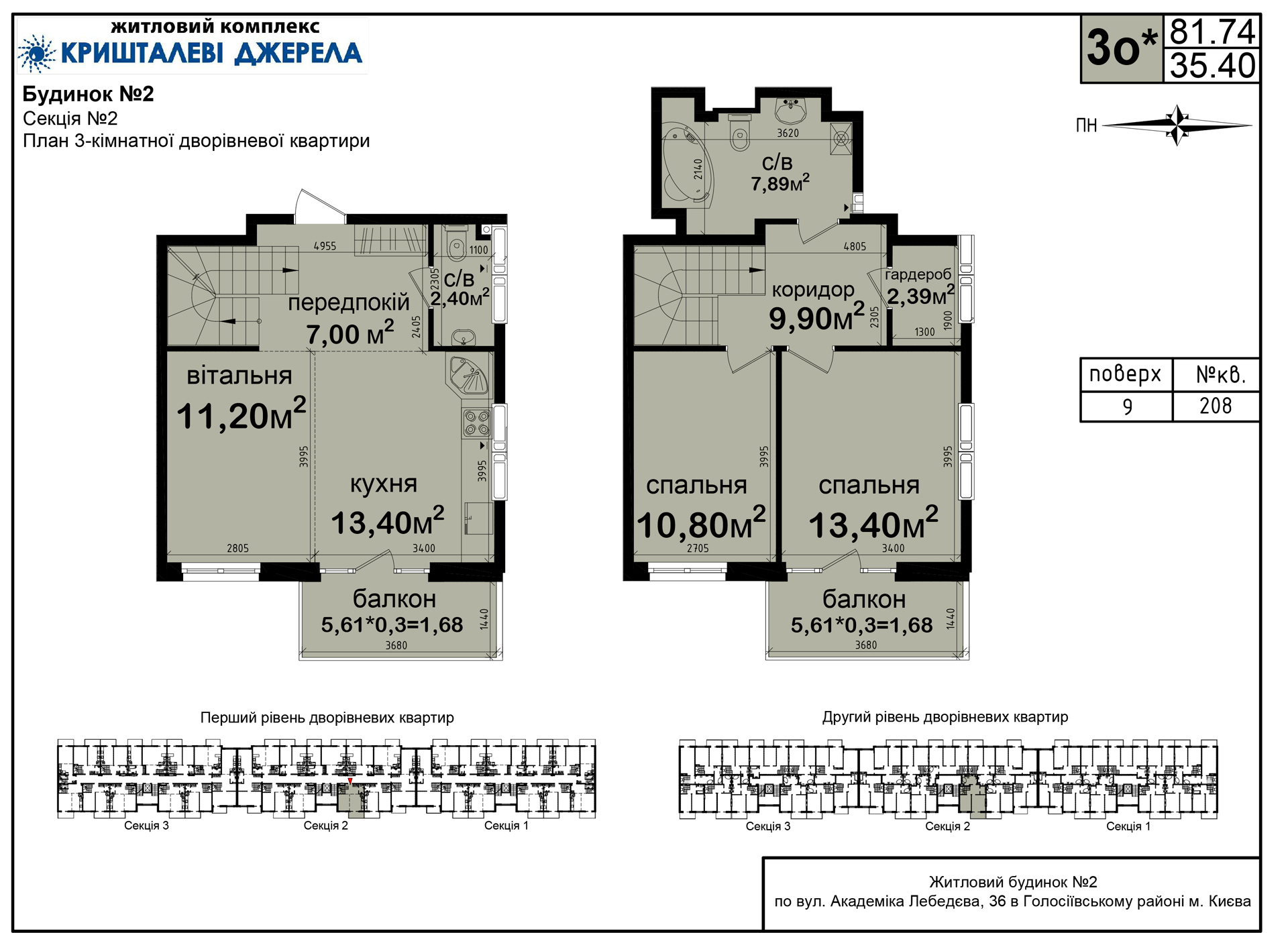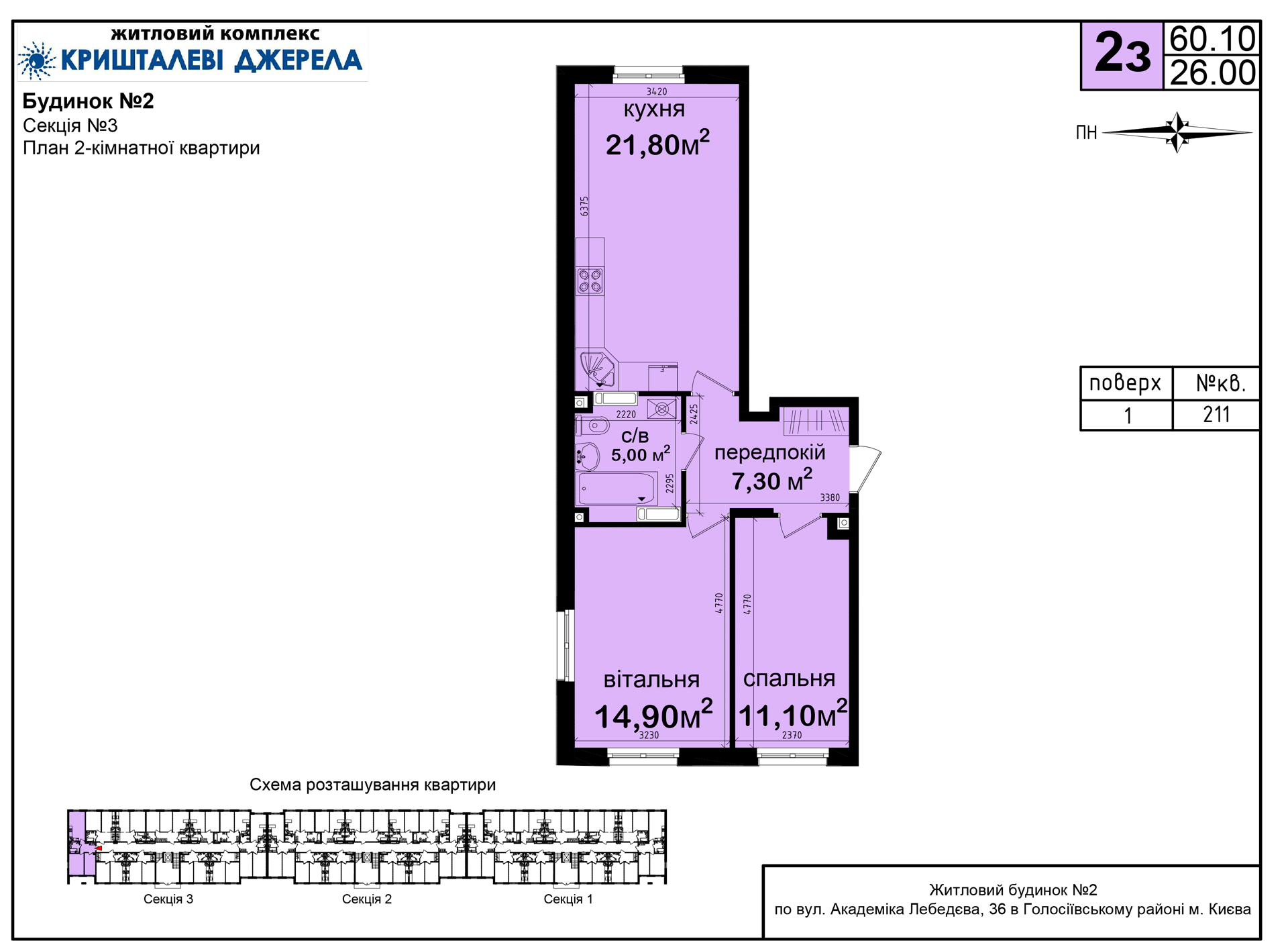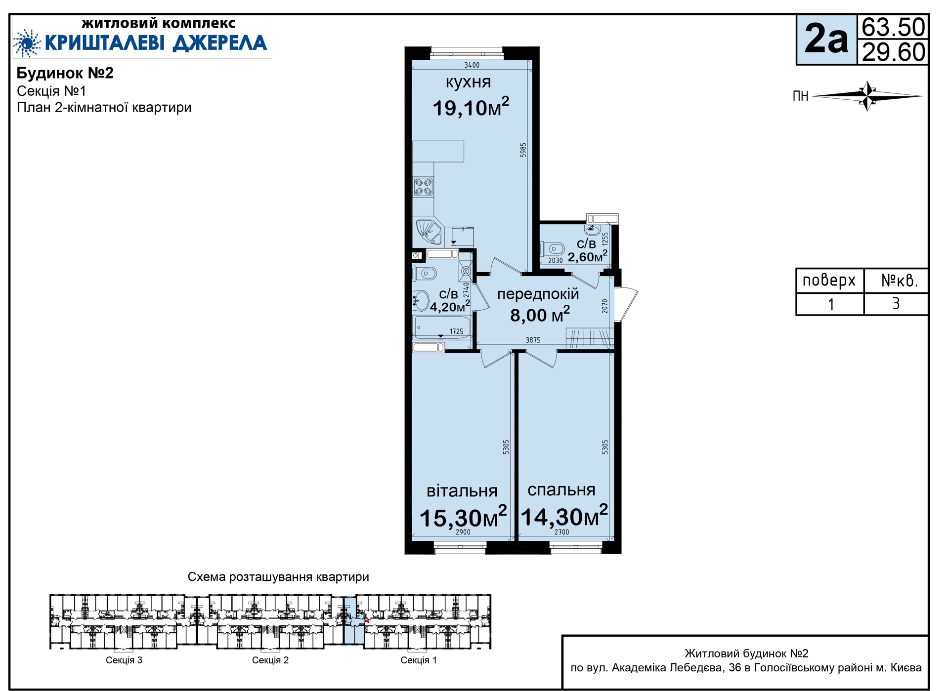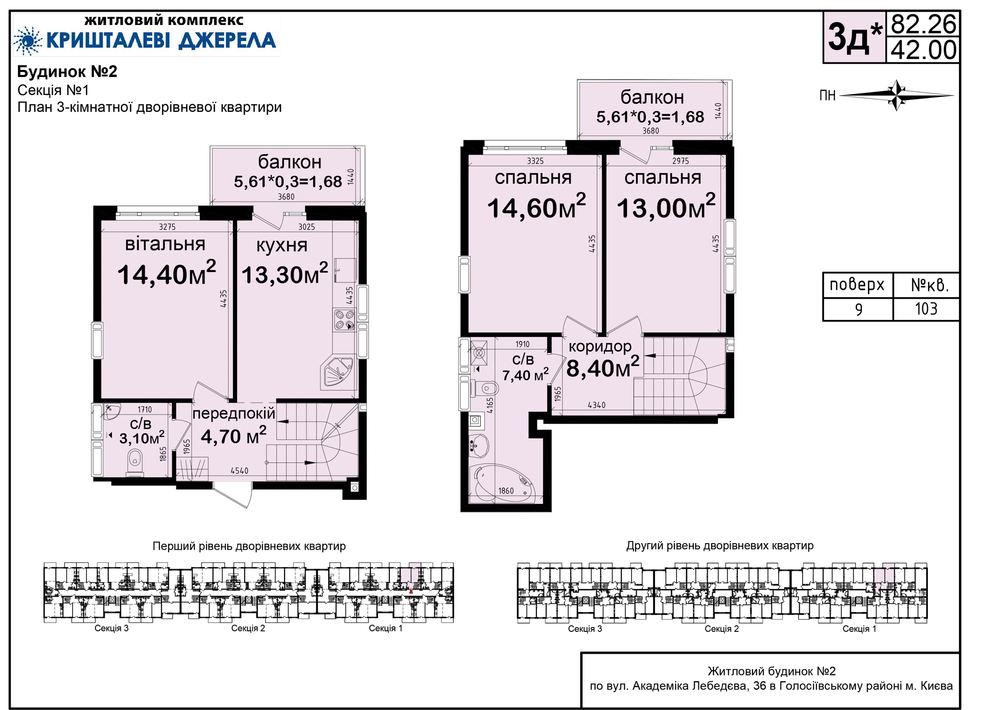 | № | Секція | Поверх | Кімнат | Площа, м2 | Ціна, грн/м2 | Ціна, грн | Статус |