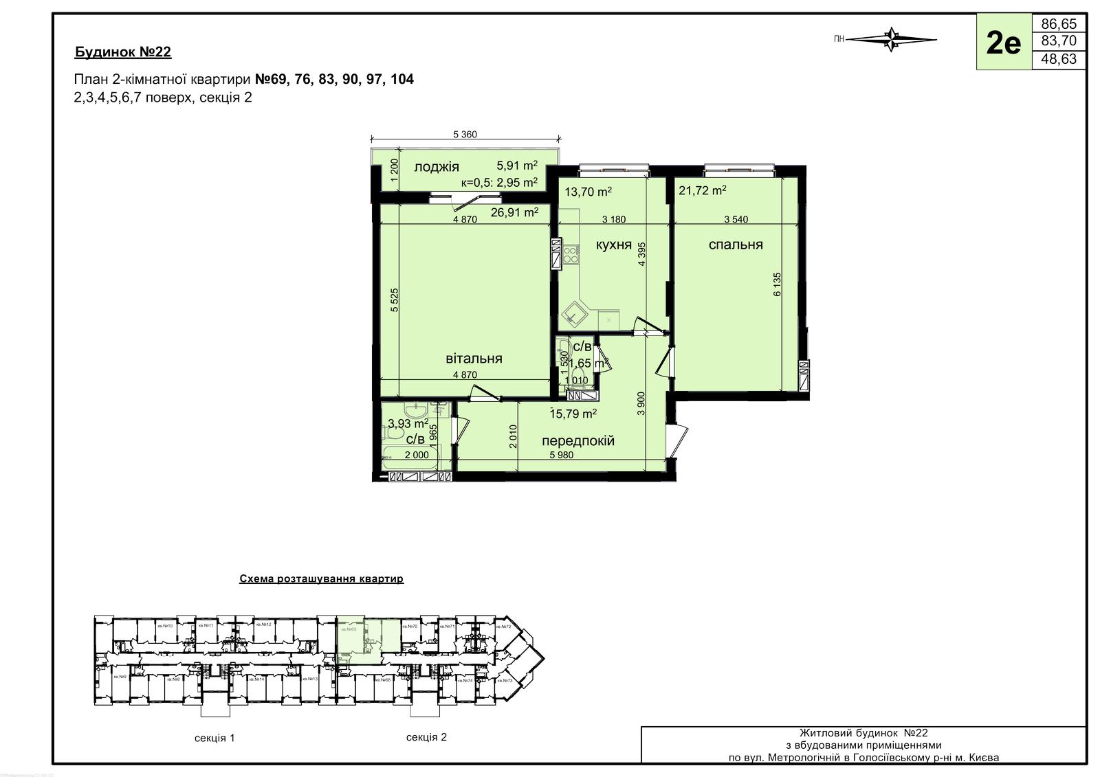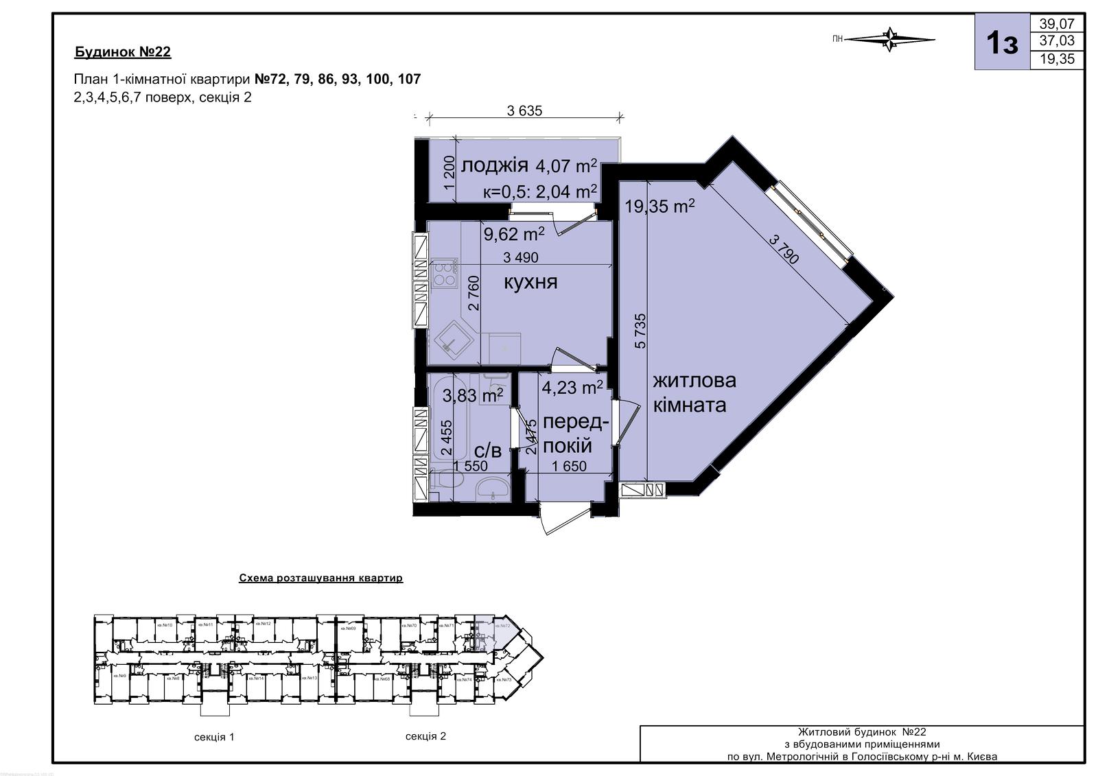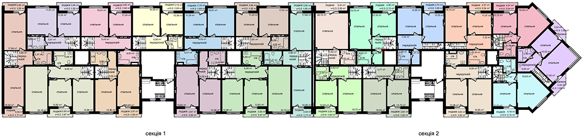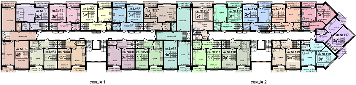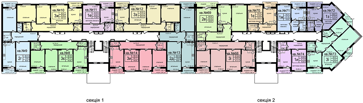 № | Секция | Этаж | Комнат | Площадь, м2 | Цена, грн/м2 | Цена, грн | Статус |